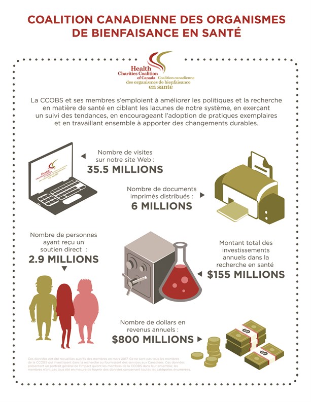La Coalition canadienne des organismes de bienfaisance en santé est un organisme axé sur ses membres qui se consacre à promouvoir de saines politiques publiques en matière de santé et de la recherche en santé de la meilleure qualité. La Coalition recherche l’excellence en ce qui concerne les politiques de soins de santé et milite pour que le gouvernement fédéral et les décideurs fassent appel à elle et à ses membres pour obtenir orientations et leadership sur les importants enjeux qui affectent les Canadiennes et Canadiens. La Coalition cherche en outre à faire reconnaître la compétence et le dévouement des organismes de bienfaisance en santé et leur contribution à l’amélioration de la santé et du bien-être de toute la population canadienne.